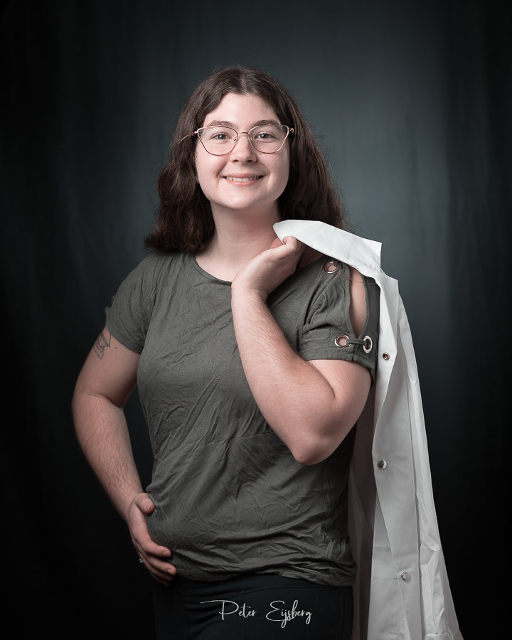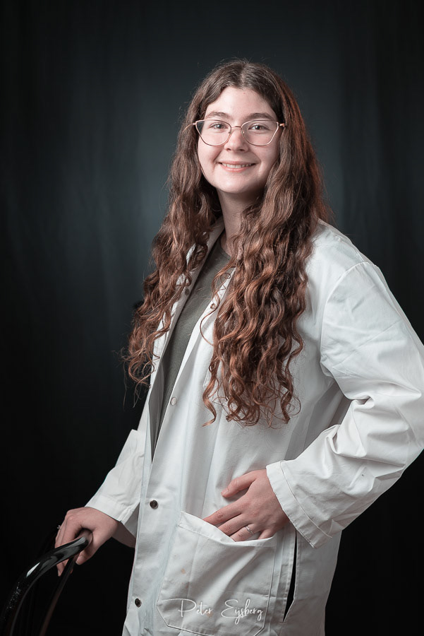 Leanne, a science student, wanted her portraits to reflect both her academic path and her personality, so we captured a mix of professional headshots in her lab coat alongside more relaxed, casual images; together, these portraits highlight her dedication to science while also showing her approachable, down‑to‑earth side, creating a balanced story of her identity both in and beyond the lab.