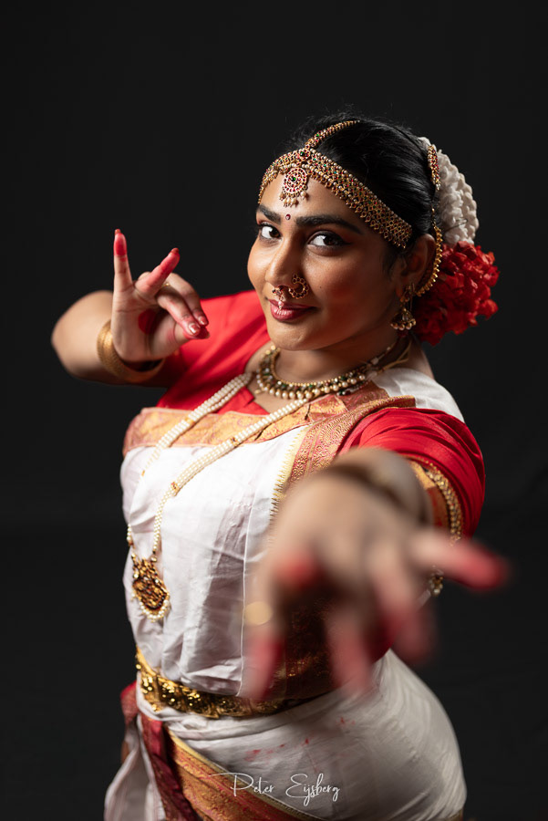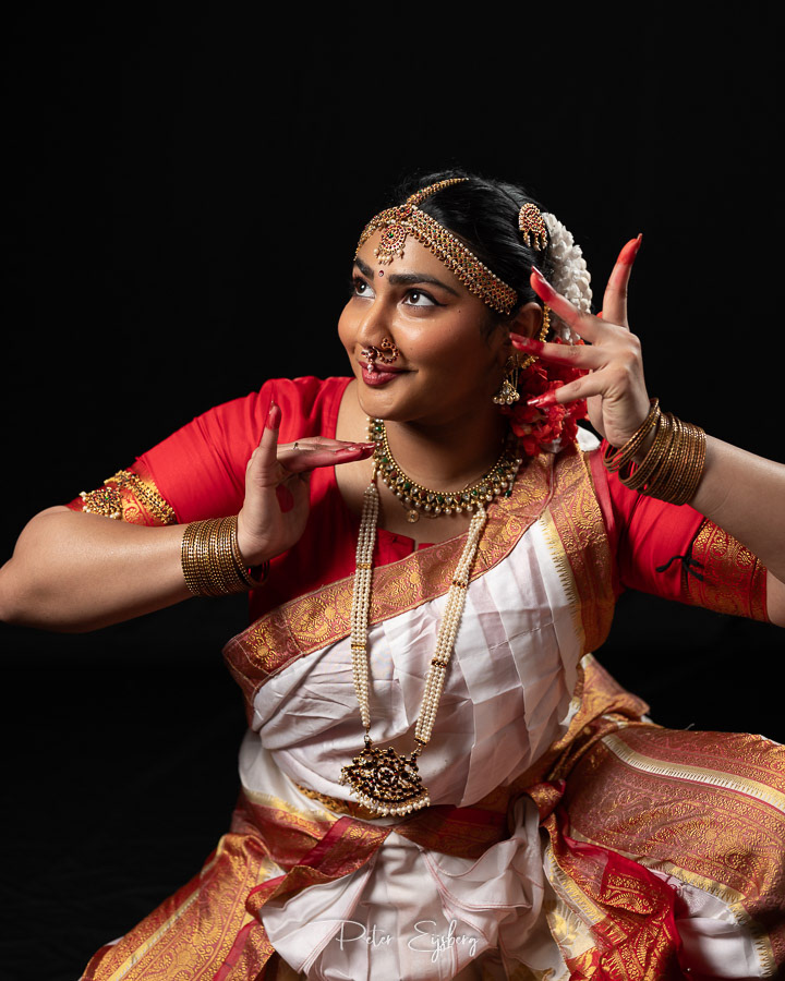 The joy of creating art together sits at the heart of this series. Dance and photography meet in the same place: intention, structure, and the freedom to express something meaningful within clear boundaries. Working with Vaidehi in her Kuchipudi practice made that alignment feel effortless: each pose carrying rhythm, each frame holding its echo. These six portraits were made in my home studio against a simple black background, giving space for expression, gesture, and the quiet precision of classical dance. Vaidehi moved through a sequence of Kuchipudi poses, and together we shaped a visual conversation between movement and stillness.
